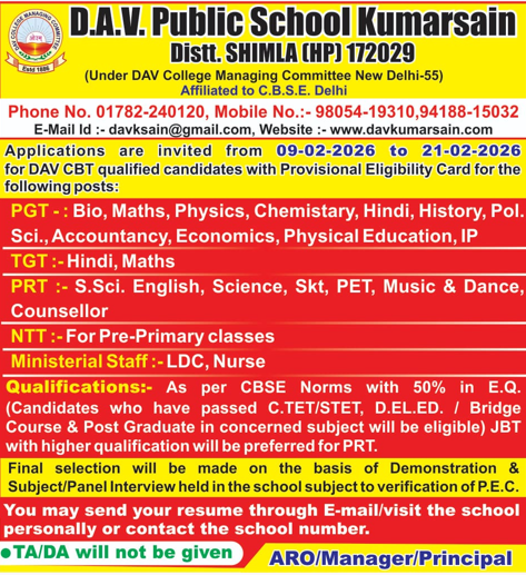 DAV SR. SEC. PUBLIC SCHOOL KUMARSAIN, SHIMLA (HP) is an institution aimed at imparting education with clear objective of preparing future global citizens who are highly proficient in the modern technologies, genuinely knowledgeable, deeply humane